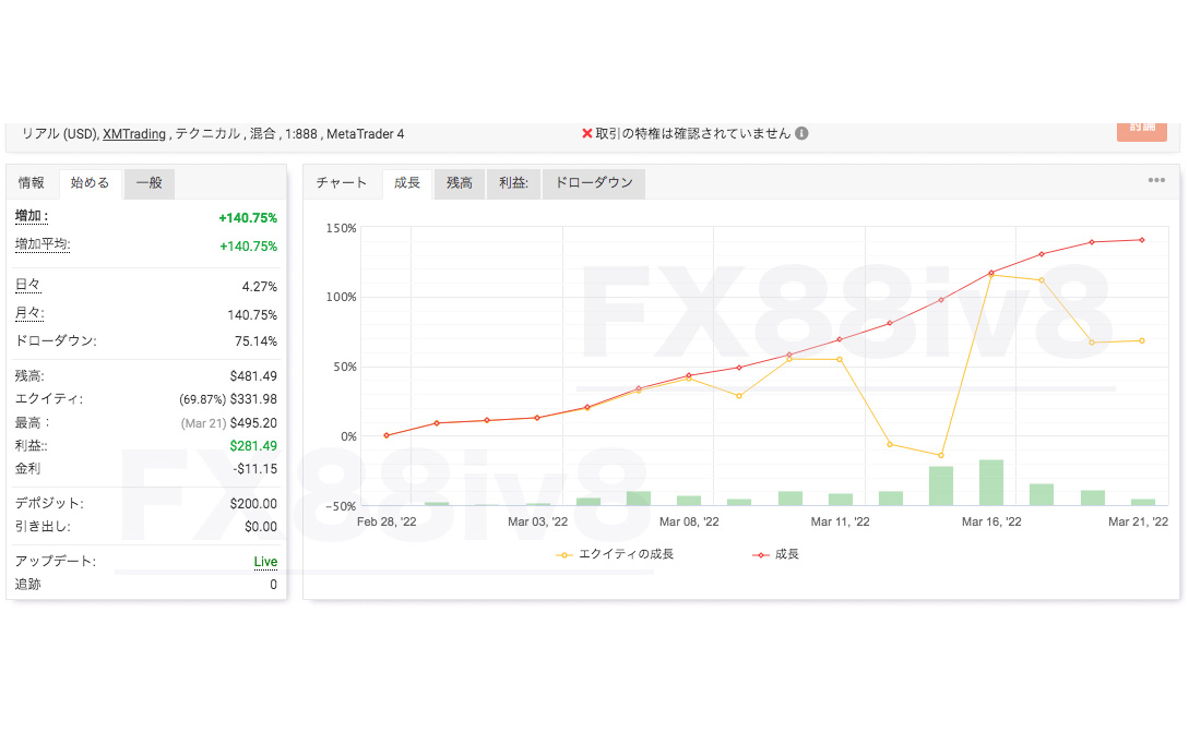 2022-03-21 最新自動売買 最新自動売買。 リアル口座で$200から始めています。 XMのマイクロ口座です。 含み損が減ったり増えたりとここ数日タラタラしております🙄 #FX #自動売買 #EA #バイナリーオプション